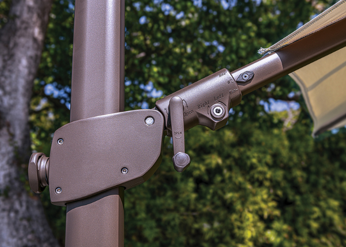 The AG25T Cantilever provides infinite tilting capabilities, front to back and left to right. Move umbrella position with ease with the foot pedal to create a multi-position 360 degree shade rotation, following the sun for outdoor enjoyment.